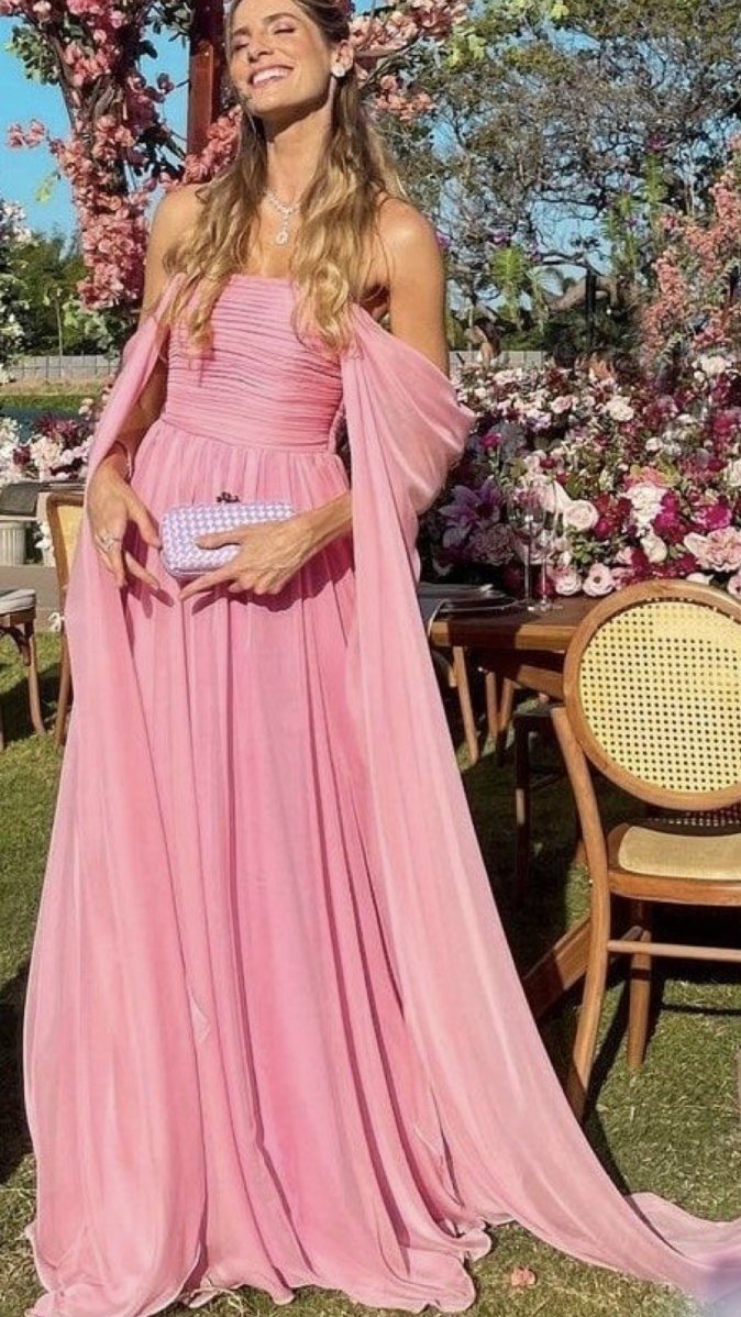 O traje escolhido para os convidados é esporte fino. Como o casamento será realizado durante o dia, recomendamos vestidos em tecidos leves e fluidos, podendo ser midi ou longos. Pedimos, por gentileza, que evitem brilhos, tecidos pesados e cores escuras. Solicitamos também que não utilizem a cor verde claro, que será usada pelas madrinhas, nem a cor branca, reservada à noiva.